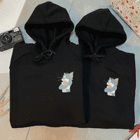 Теплі парні худі для закоханих на флісі з принтом Том і Джері